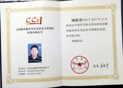 • 18-02-10熱烈祝賀河南眾海餐飲管理有限公司榮獲河南餐飲與飯店協會團餐委